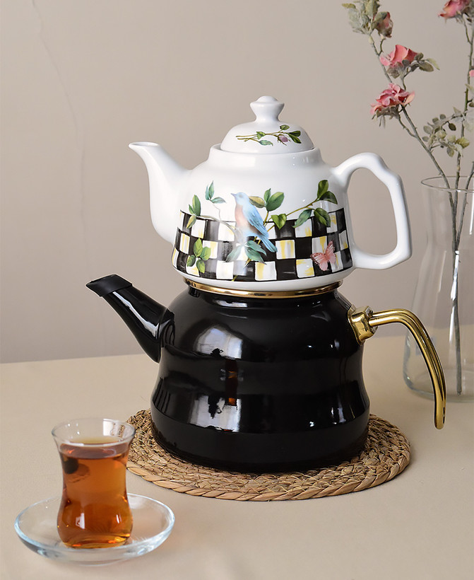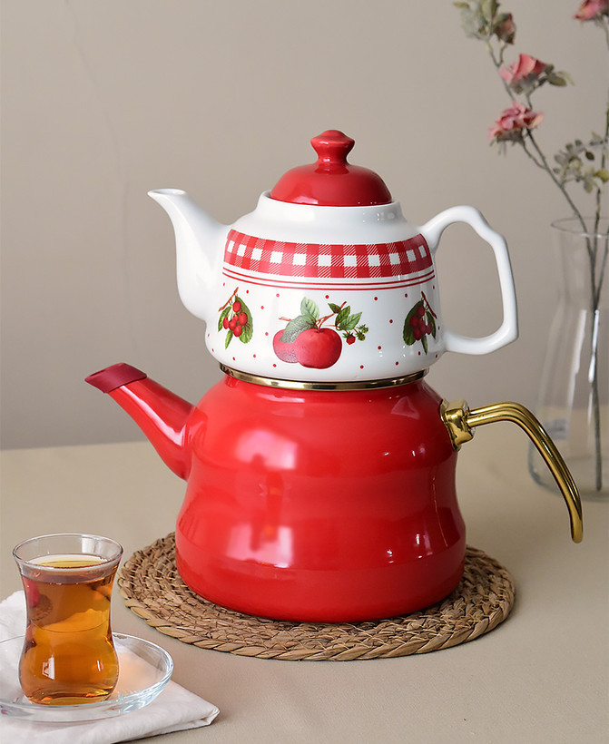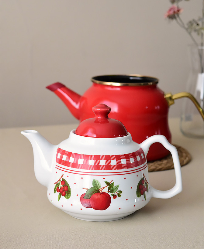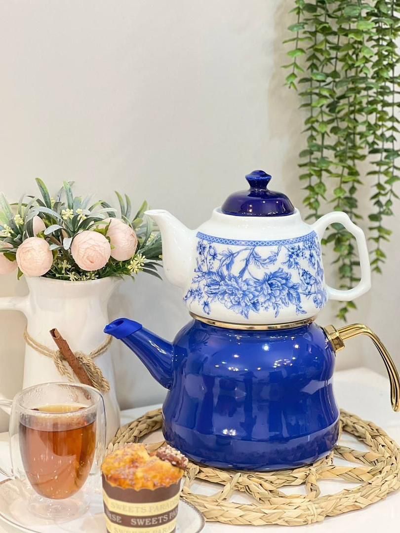کتری قوری جدید محصول کشور ترکیه🇹🇷 برند miss betty جنس کتری:لعابی با گرانیت سه لایه پوششی جنس قوری:چینی دستگیره کتری از جنس استیل دستگیره کتری در اثر حرارت داغ نمیشود حجم کتری:2.650 سی سی حجم قوری:1.150 سی سی