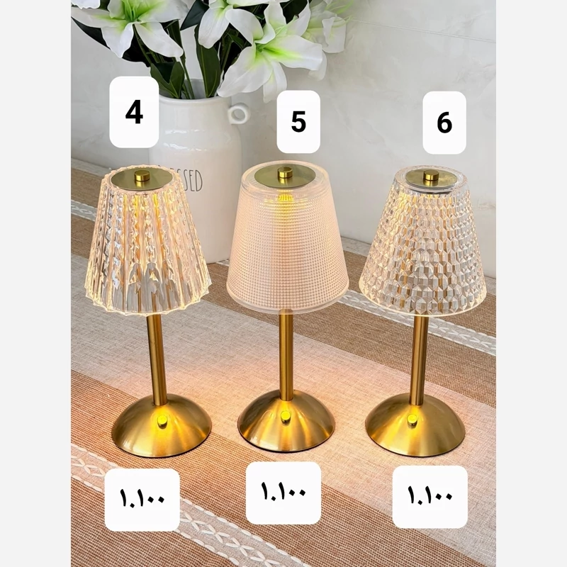 آباژور شارژی در 13 طرح متفاوت وارداتی (بالاترین کیفیت از لحاظ نور ، رنگ ، باطری ) جنس کلاهک اکرولیک محکم و باکیفیت جنس پایه فلز ضخیم با آبکاری طلایی دارای 3 طیف نوری ( آفتابی ، مهتابی ، نچرال ) دارای کابل شارژر تاچ لمسی ارتفاع 30 شماره 1 ، 2 ، 3 ، 4 ، 5 ، 6 قیمت : 1.100.000 تومان شماره 7 ، 8 ، 9 ، 10 ، 11 ، 12 ، 13 قیمت : 1.200.000 تومان