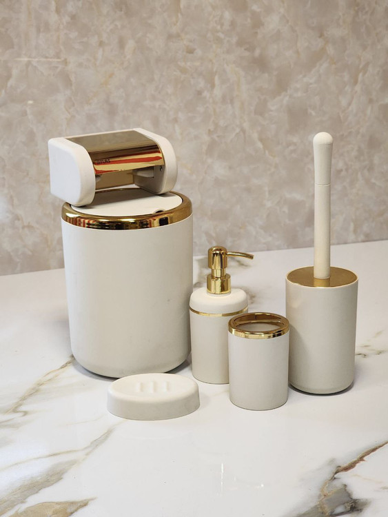 ▪️شامل سطل،برس،جامسواک،جاصابون ، جامایع و جا دستمال